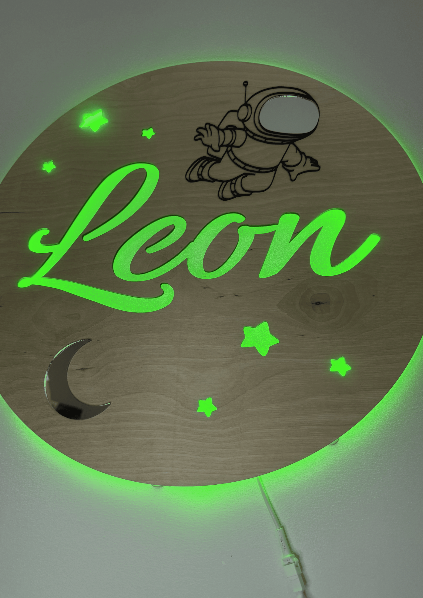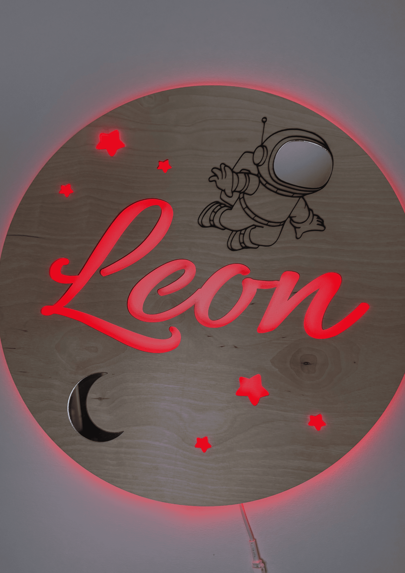 Nasza drewniana lampka nocna to połączenie naturalnego designu i nowoczesnej technologii. Wzór z napisem „Leon” i motywem kosmicznym 🚀⭐ już robi wrażenie, ale to dopiero początek…